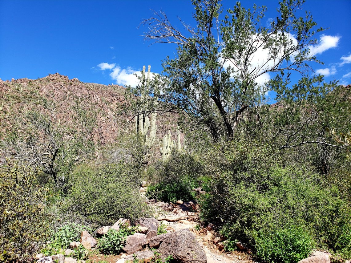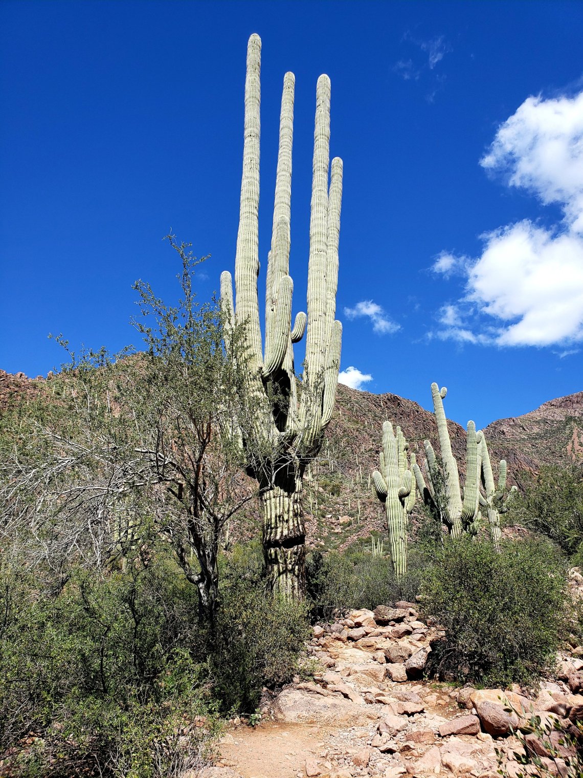 There were a couple of really tall Saguaros off the trail.