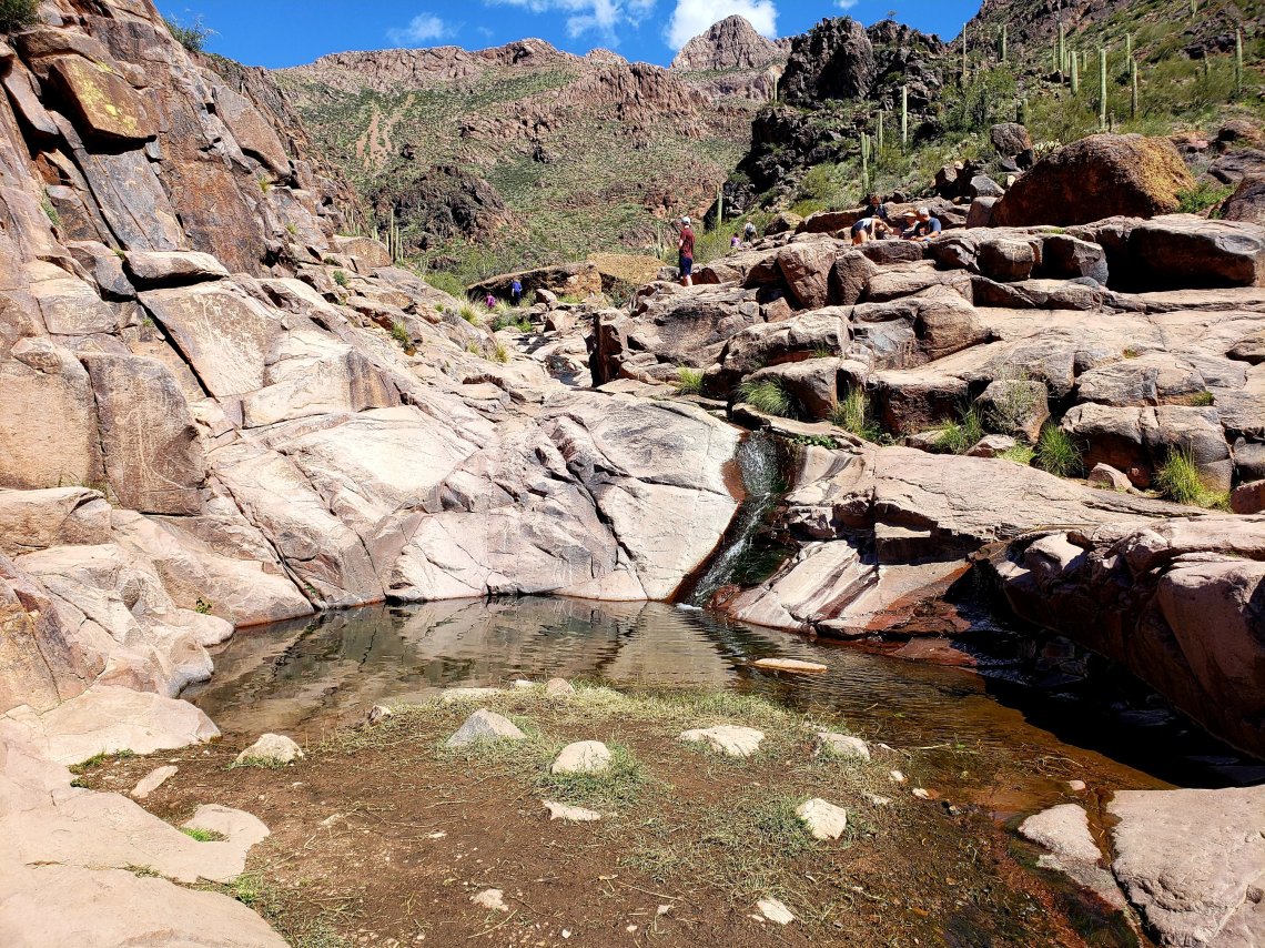 You also find nestled down in between the rocks, a small waterfall and pool of cold water.