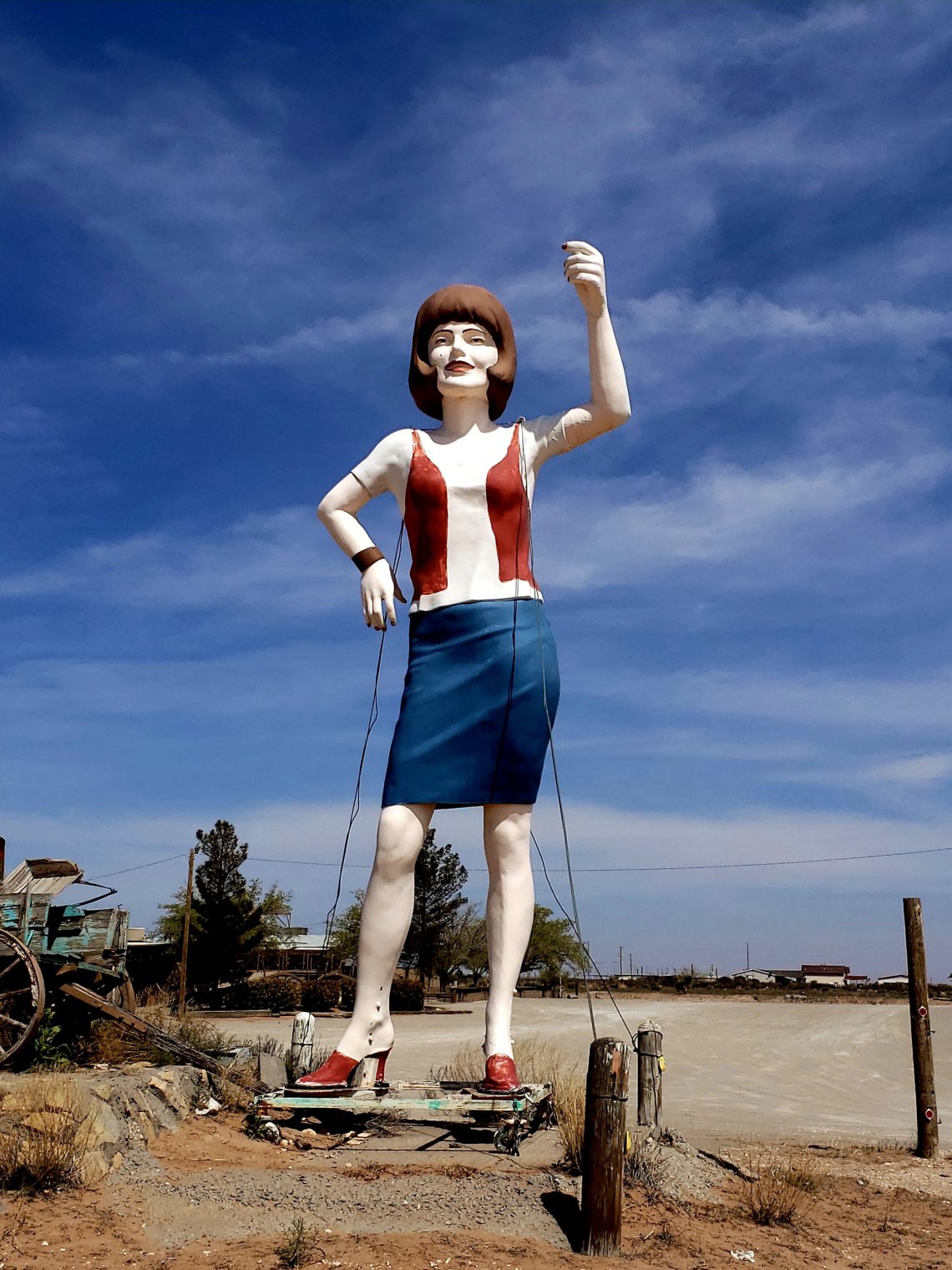On Tuesday I drove the rest of New Mexico and into Texas where I found this lovely lady. No it’s not a statue of Jackie Kennedy Onassis, it’s the Uniroyal Gal and she hangs out in El Paso.