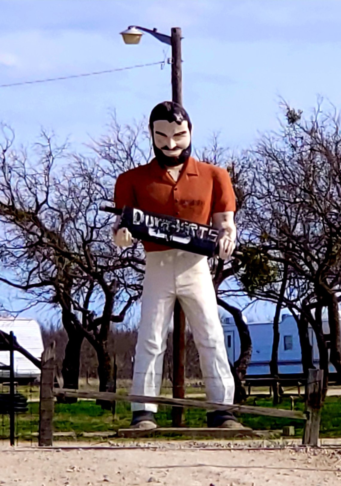 Before I settled in for the night at the neighborhood Walmart parking lot in San Angelo, I was in search of Mr. Bendo, the Muffler Man.
