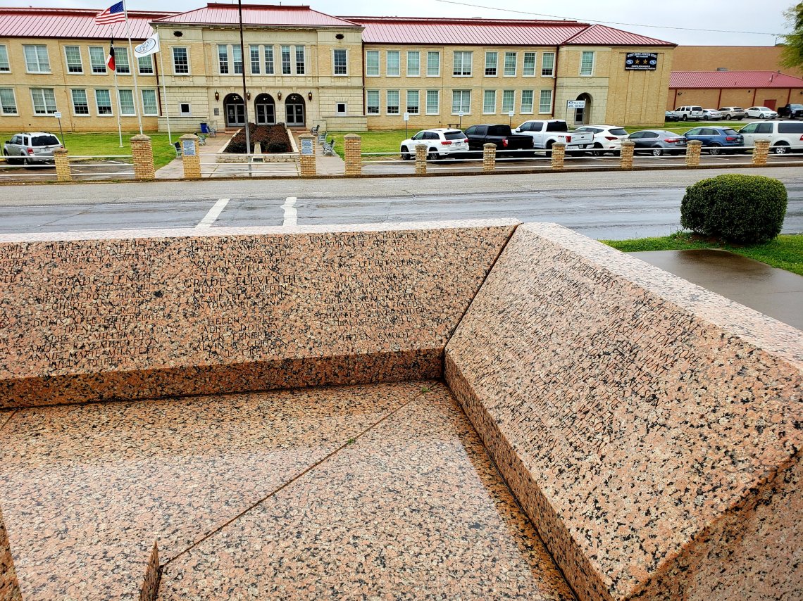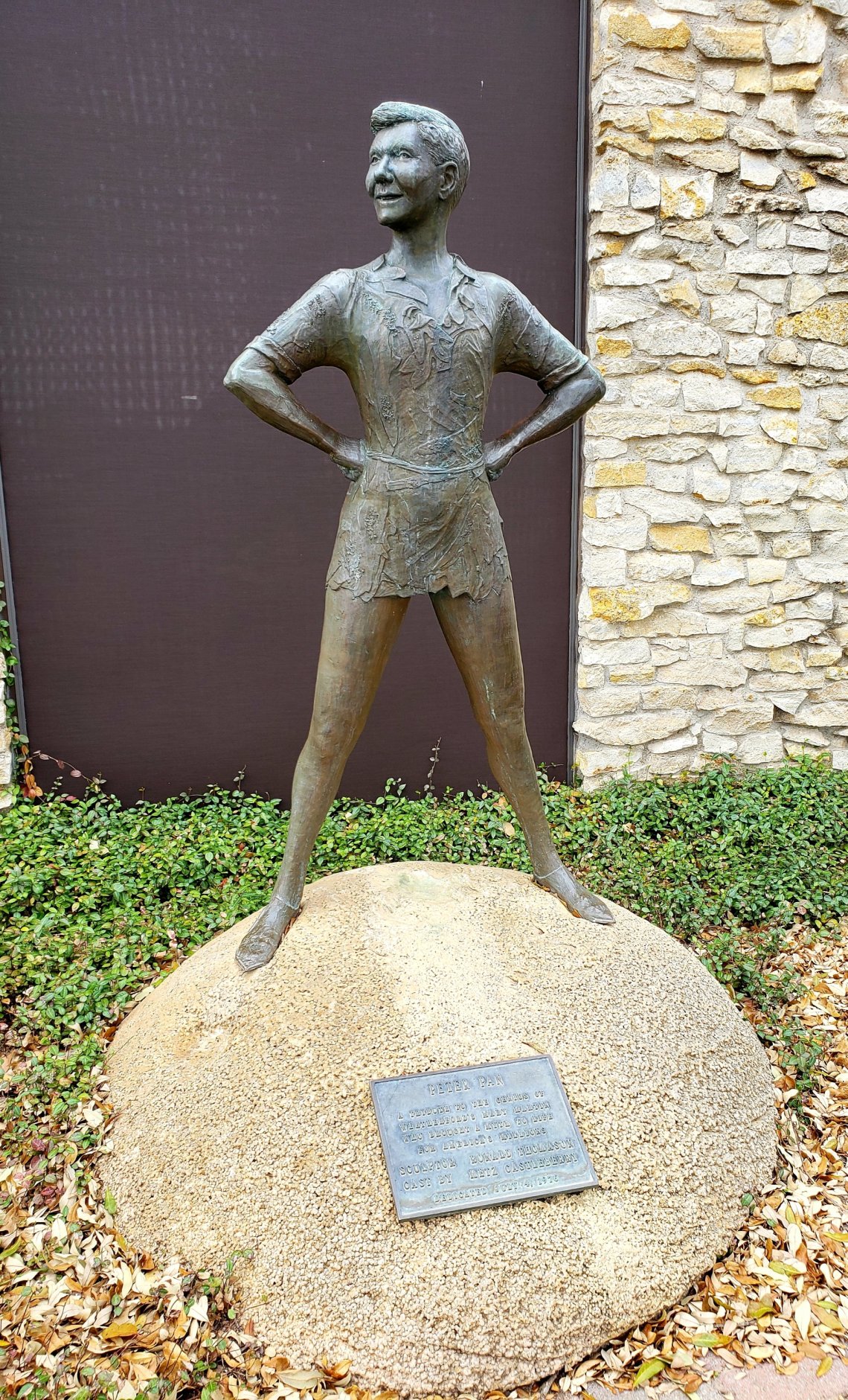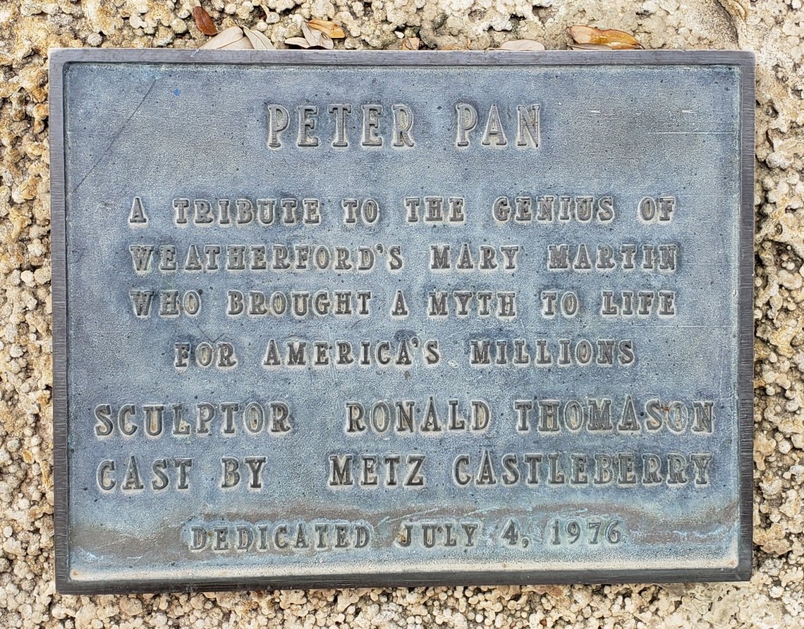 The next town of Weatherford, Texas, was home of Mary Martin who played Peter Pan in the original movie. This is the statue and tribute that stands outside the public library.