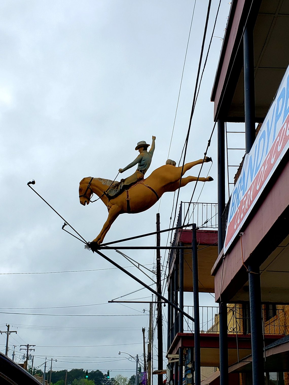 I have heard the saying “when pigs fly” but the new saying is when “bucking broncos and cowboys fly” according to this building in Logansport! Yee Haw