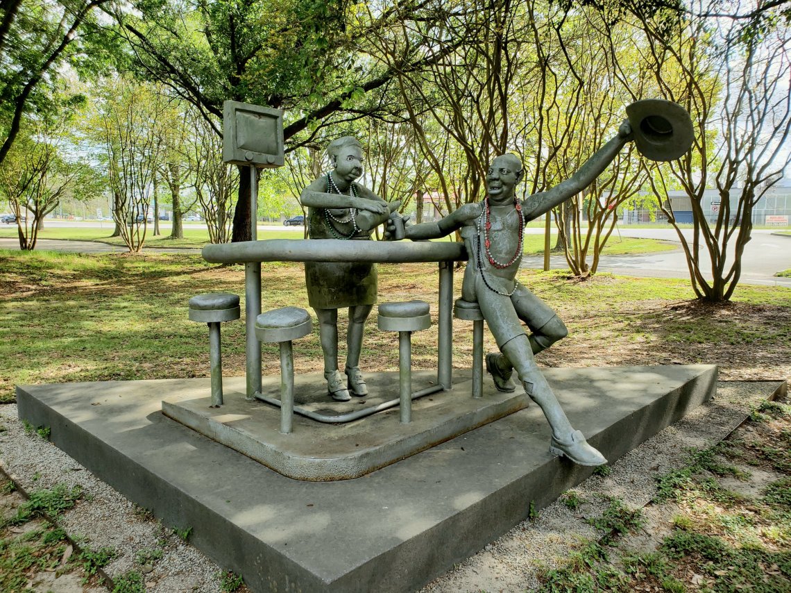 In Lafayette, Louisiana at the visitors center under some shade trees is this fun sculpture called “Miss Rose’s Bar” a tribute to Mrs. Maudie McBelton.