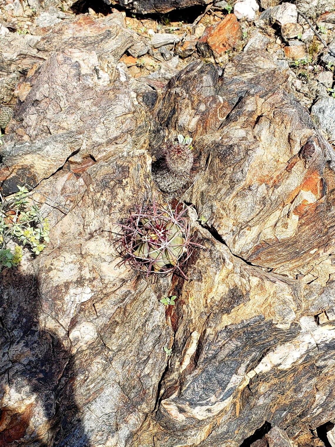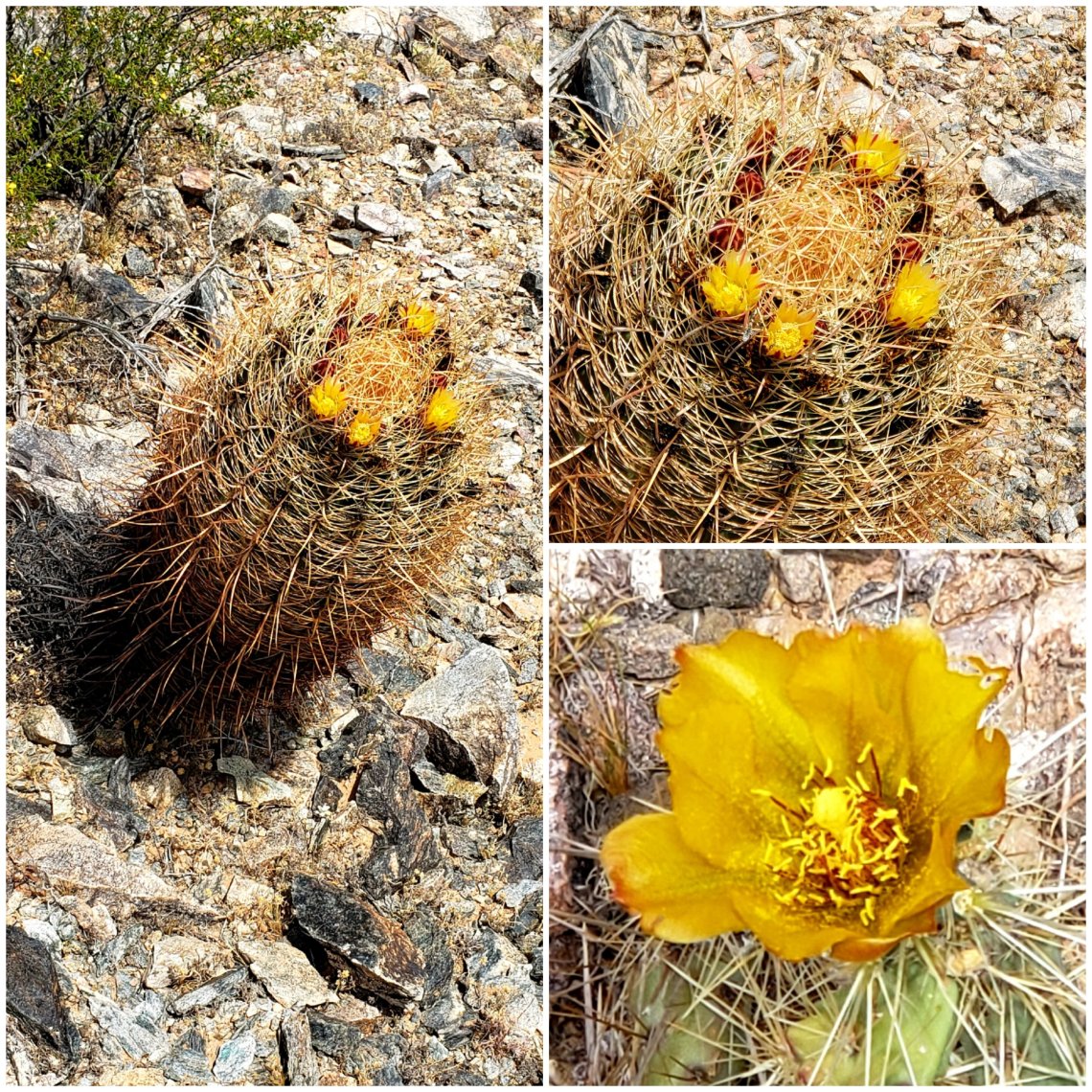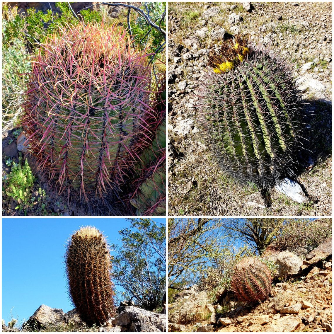 The Compass Barrel can grow up to 5 feet high and have up to 30 ribs with very rigid spines.The Compass Barrel was the most common barrel cactus that I encountered. Beautiful yellow flowers that bloom like a halo or wreath are found around the top.Many times when I came upon a Compass Barrel they had yellow fruit where the flowers would blossom and these had been eaten by critters.