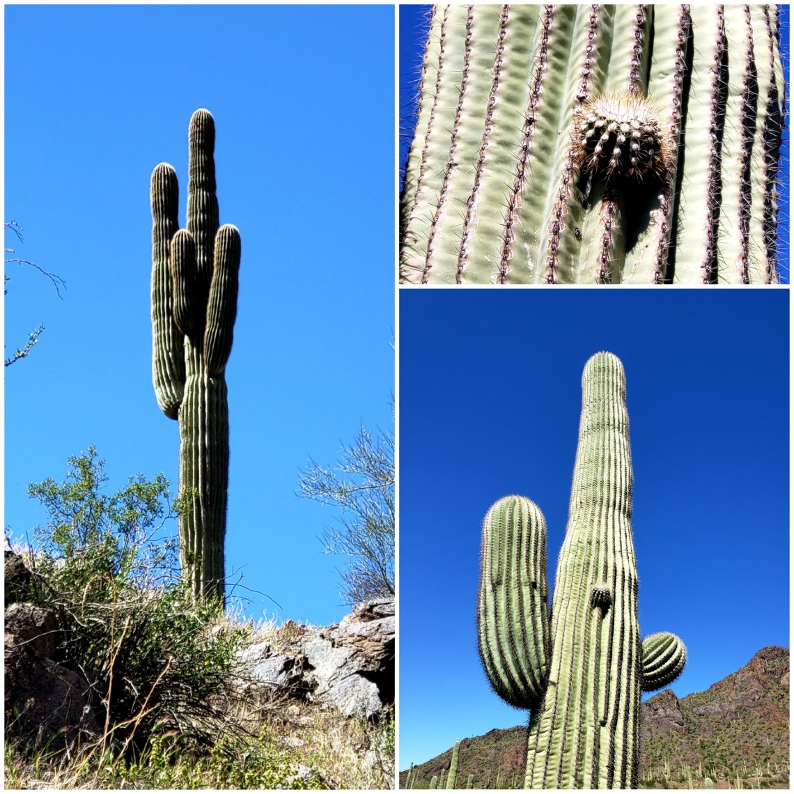 The Saguaro seen below has tiny new stems/arms growing out of it. These cacti arms often resemble arms that look like they are hugging or raising to the skies.