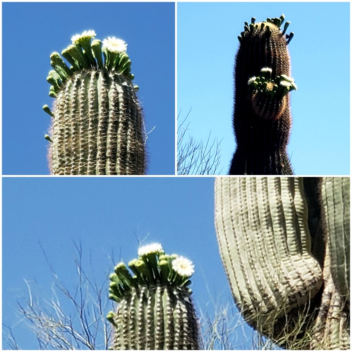As late April approached the Saguaro formed clusters of blossoms at the top and ends of the arms.