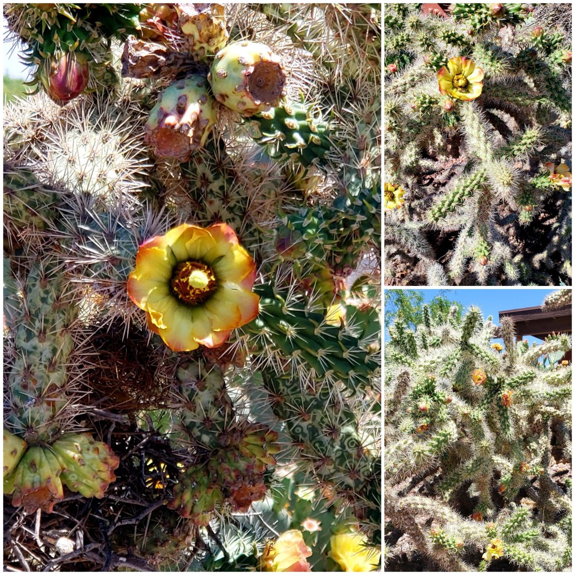 The Teddy Bear Cholla with its yellow flowers and red tips. Beware, this Cholla is not soft and cuddly.