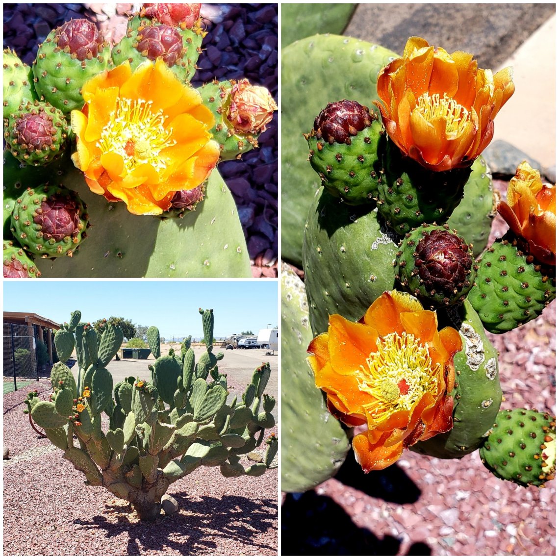The 1 inch spines cover the pads that range from 4 to 16 inch wide.The vibrant yellow flowers turn an apricot color as they age and as you can see they are a beautiful sight.