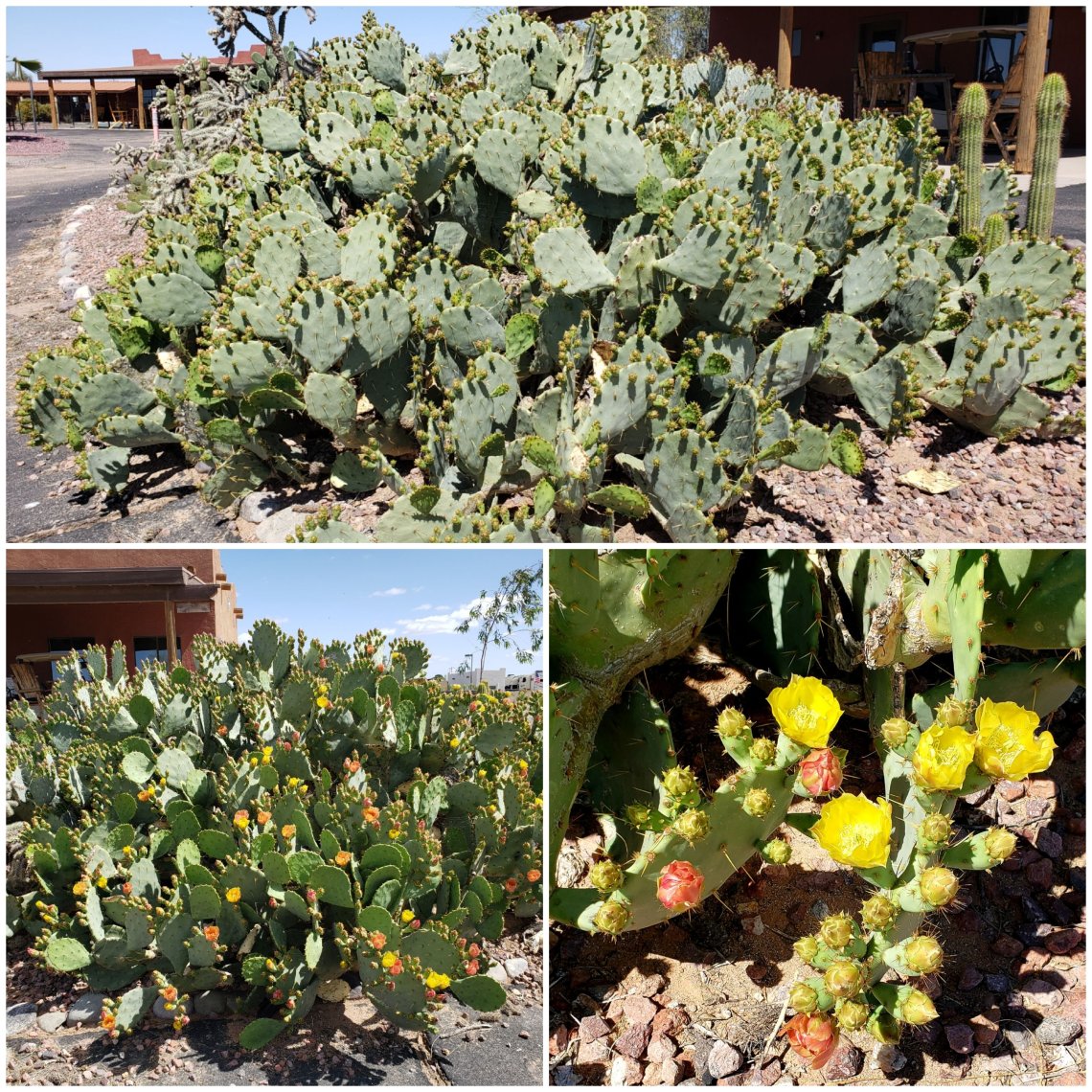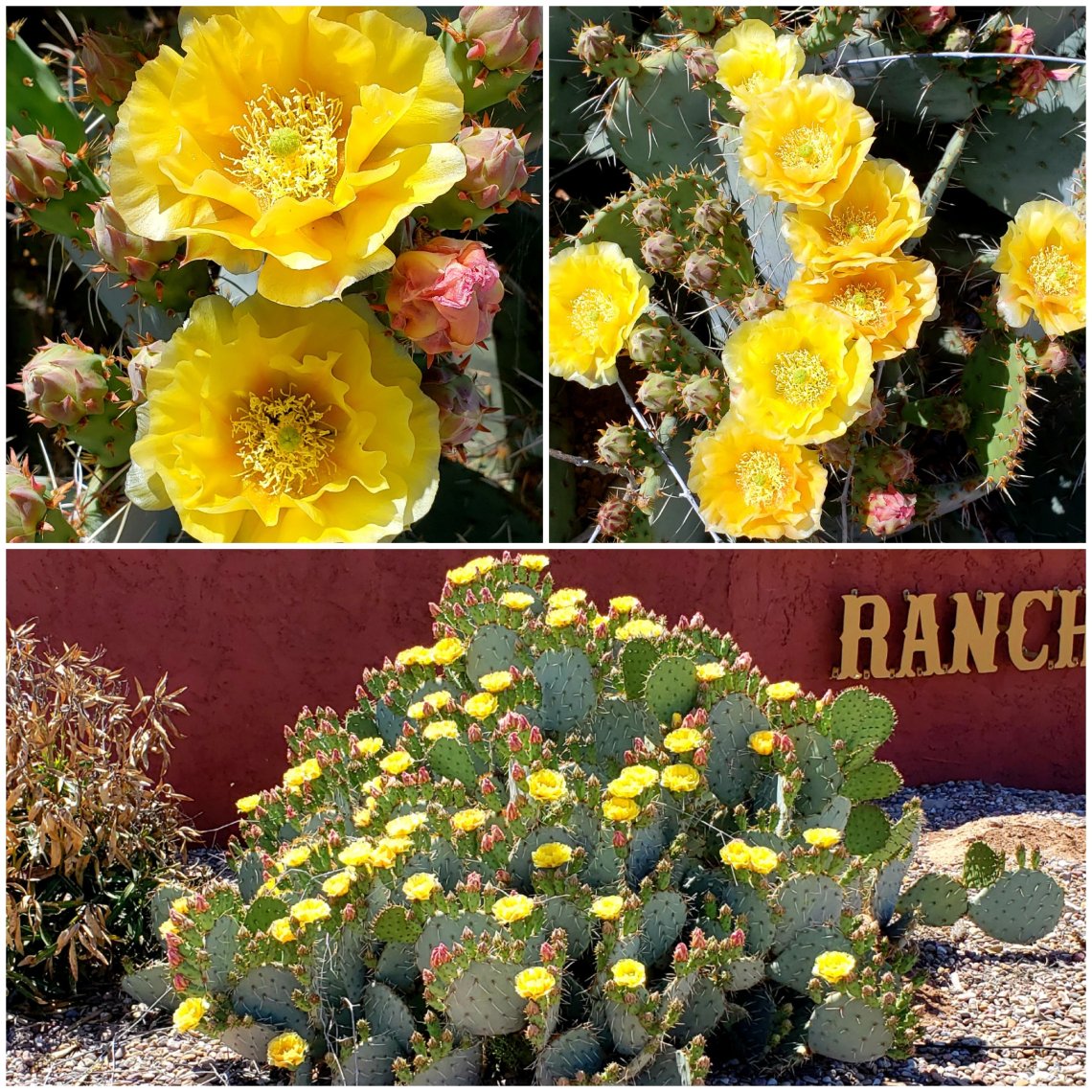 **** Prickly PearThere are many different types of Prickly Pear cactus. The one below is at the Ranch and is the Engelmann Prickly Pear. It is a taproot cactus of multiple clusters that can range from 6 to 15 feet in height.