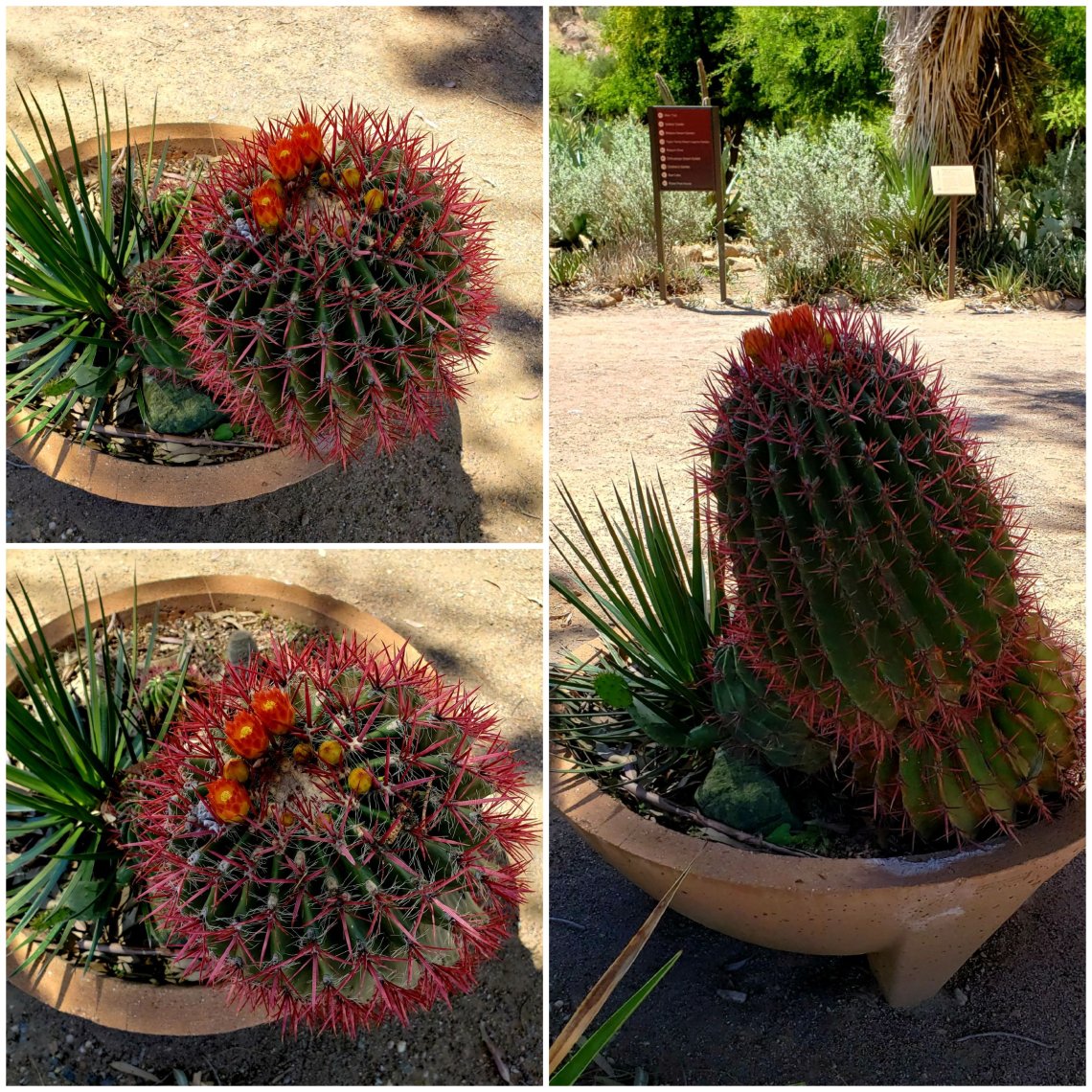 Seen at the Boyce Thompson Arboretum this beautiful Red Fire Barrel Cactus is showing off its red flowers.