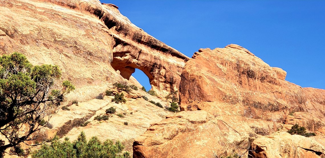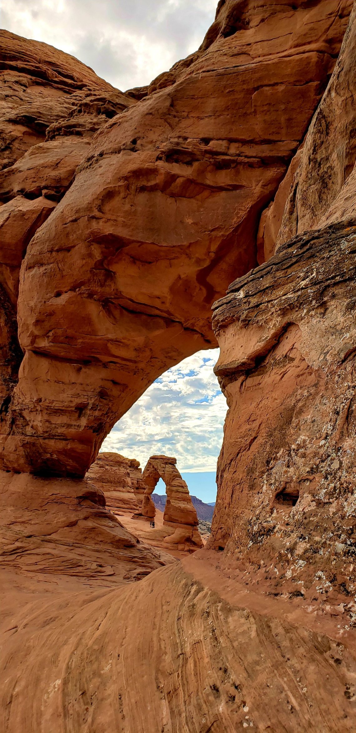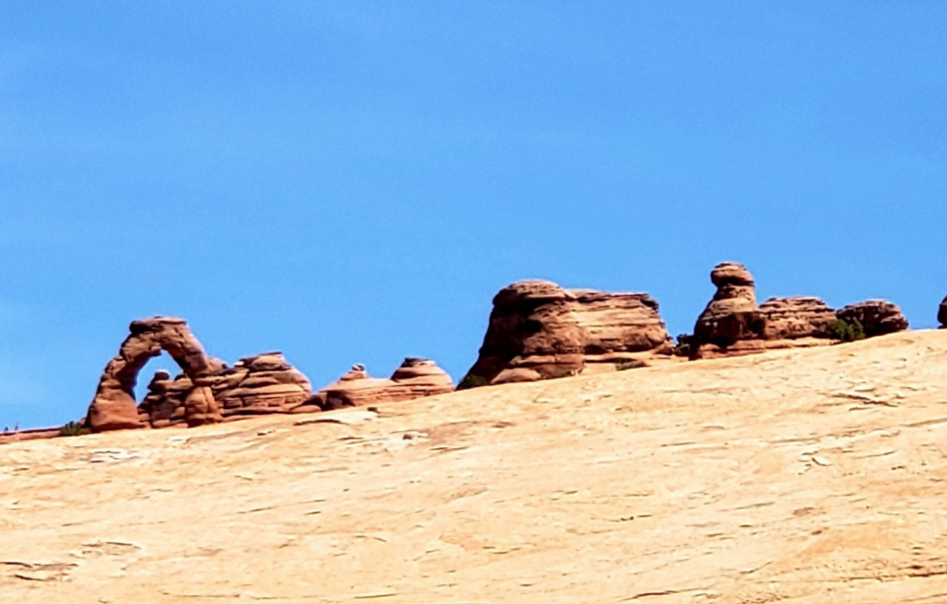 There was an unnamed Arch on the trail where you could view Delicate Arch through it if you were able to climb the slickrock.