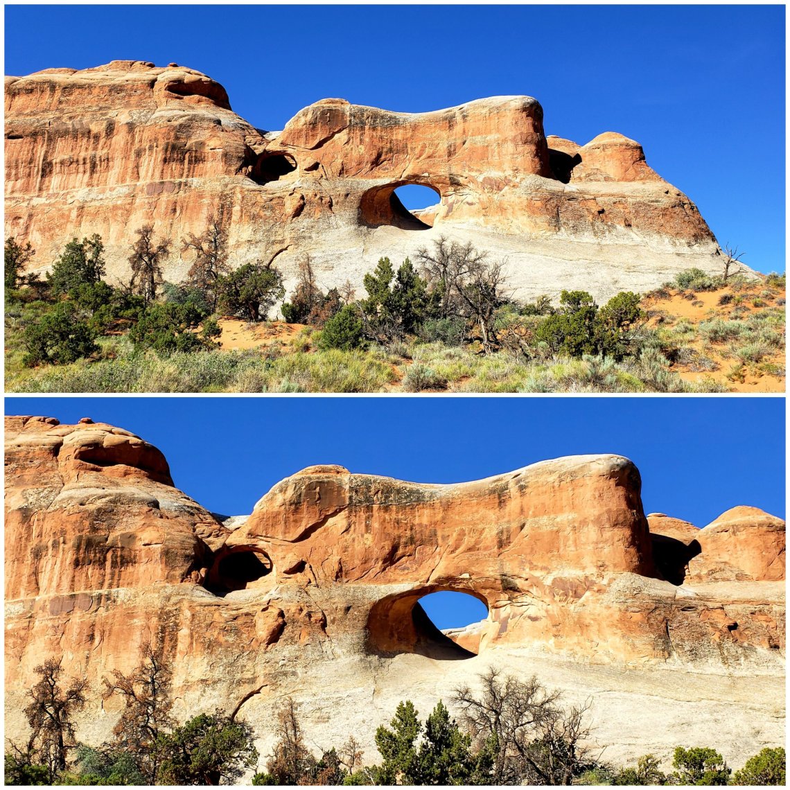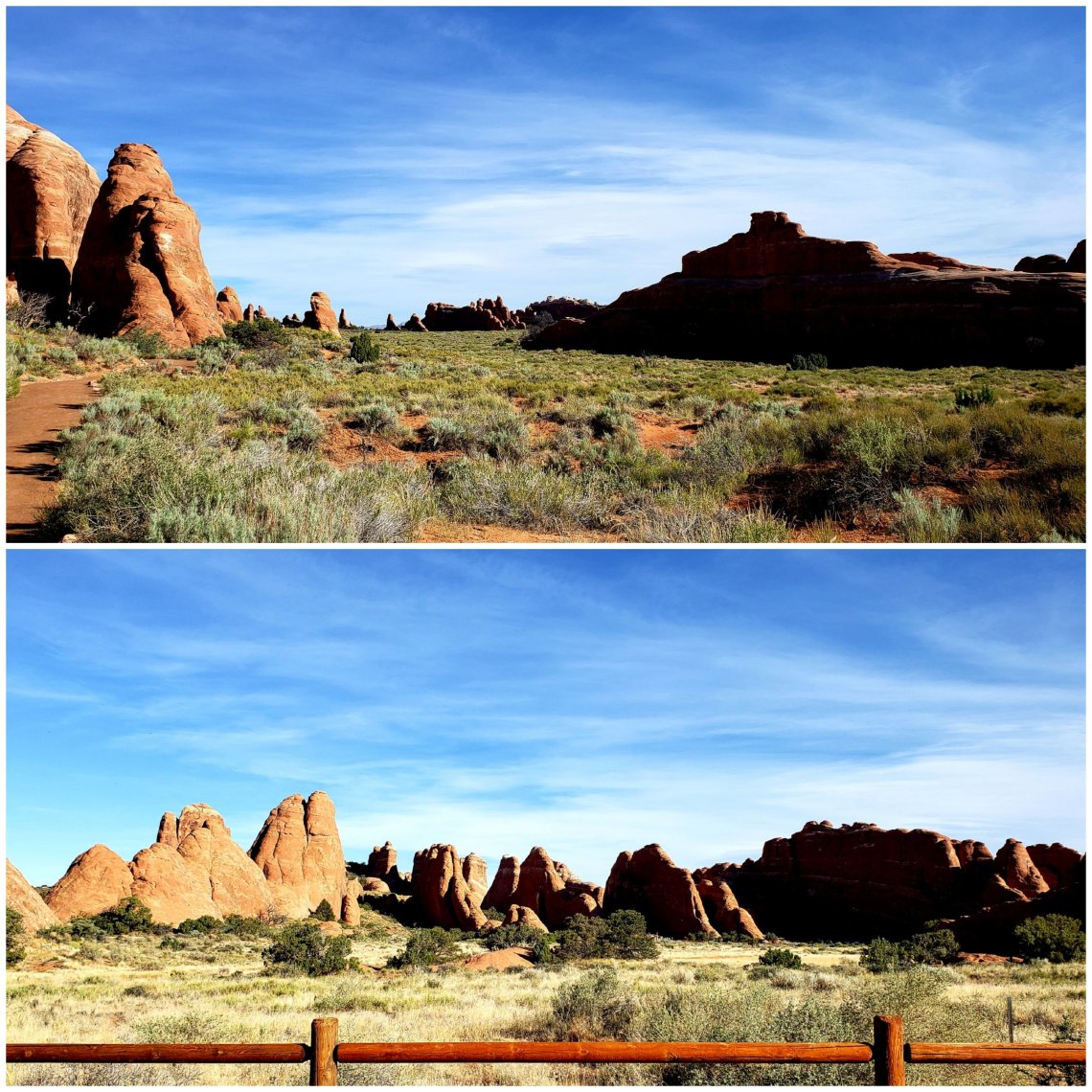 The top picture is the Canyon behind Delicate Arch and the bottom is an unnamed Arch on the left side of the trail.