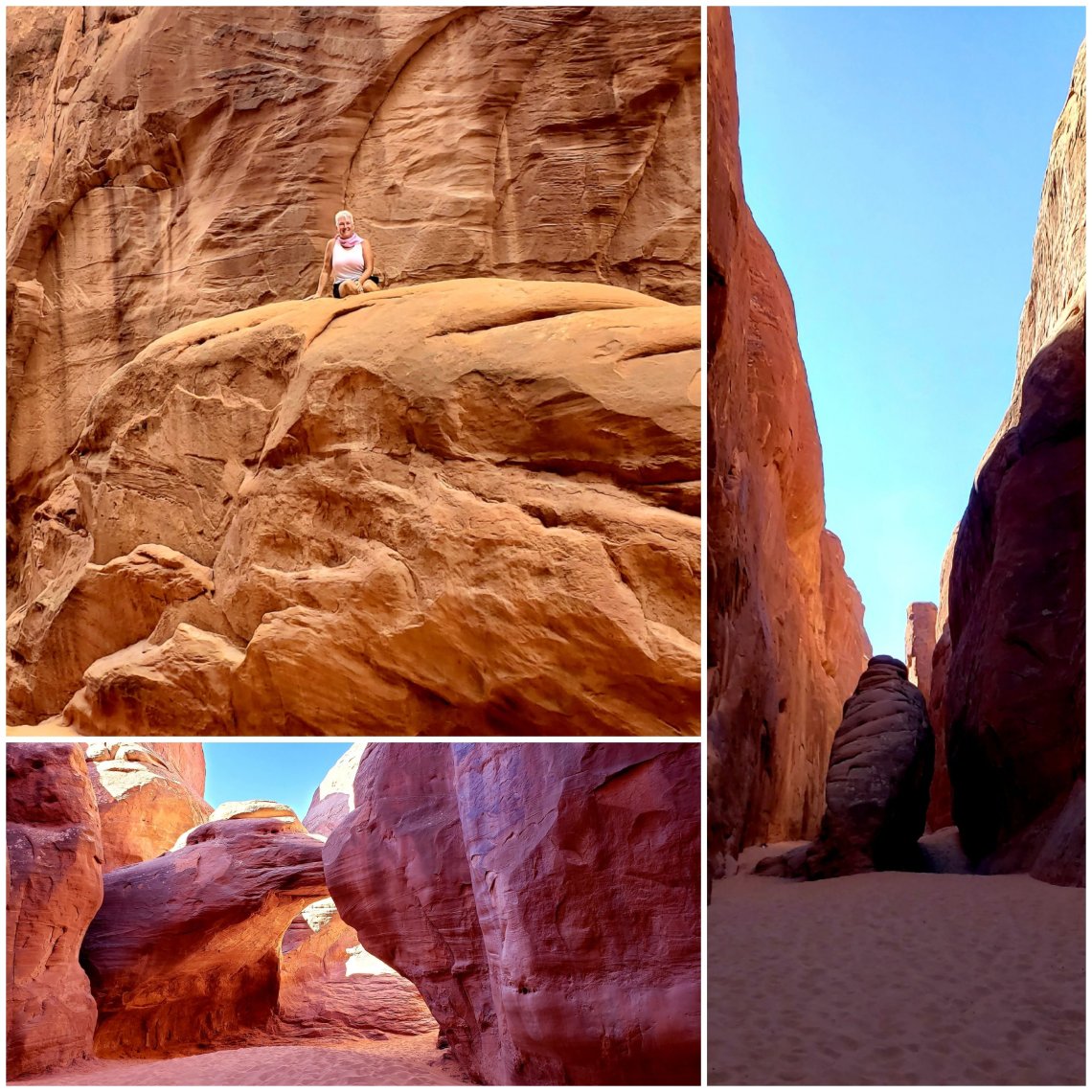 Big boulders and thin passages take you back to Sand Dune Arch which is filled with tons of red sand. I think the children playing there thought they were at the beach.