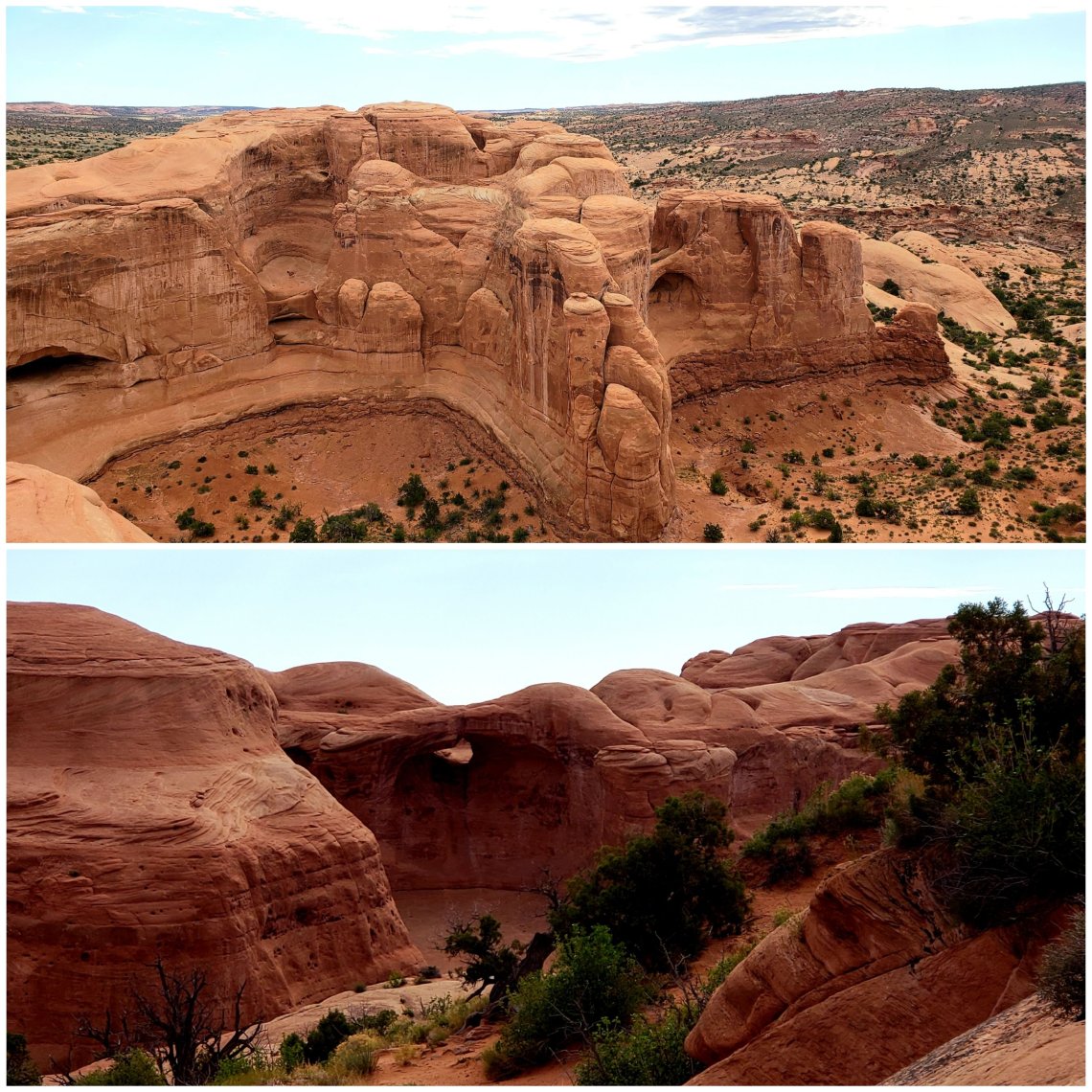 The bottom picture is the mound of slickrock one must maneuver to get to Delicate Arch.