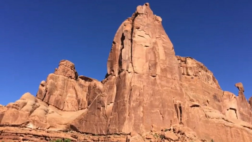 Along the drive through Arches National Park are several rock formations with names, as the one below called Sheep Rock.