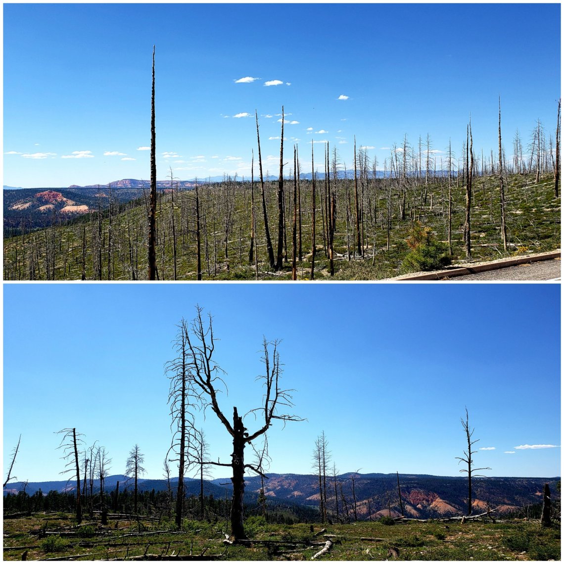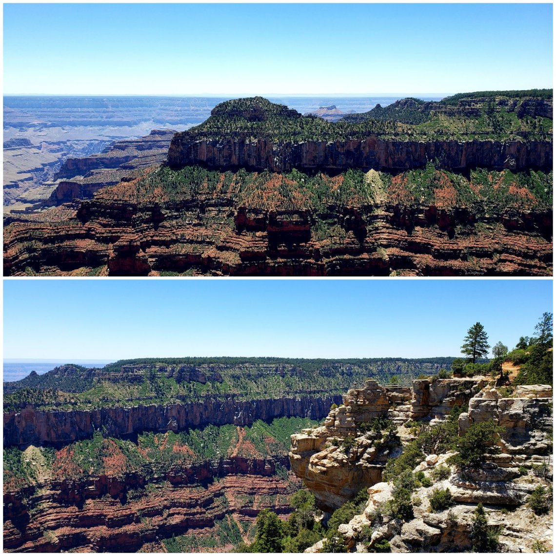 Driving to and from the North Rim there were visible differences in the terrain.The top picture is just an example of the devastation a wildfire can produce.The bottom picture is of the amazing meadows that were abundant at one section of the park.