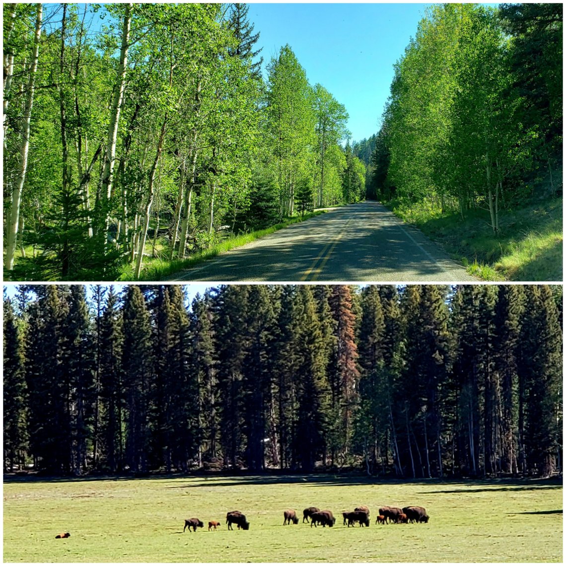 Most of the scenery on my drive was through wooded areas like you see in the top picture.Leaving the park today I enjoyed seeing a herd of bison that were grazing.