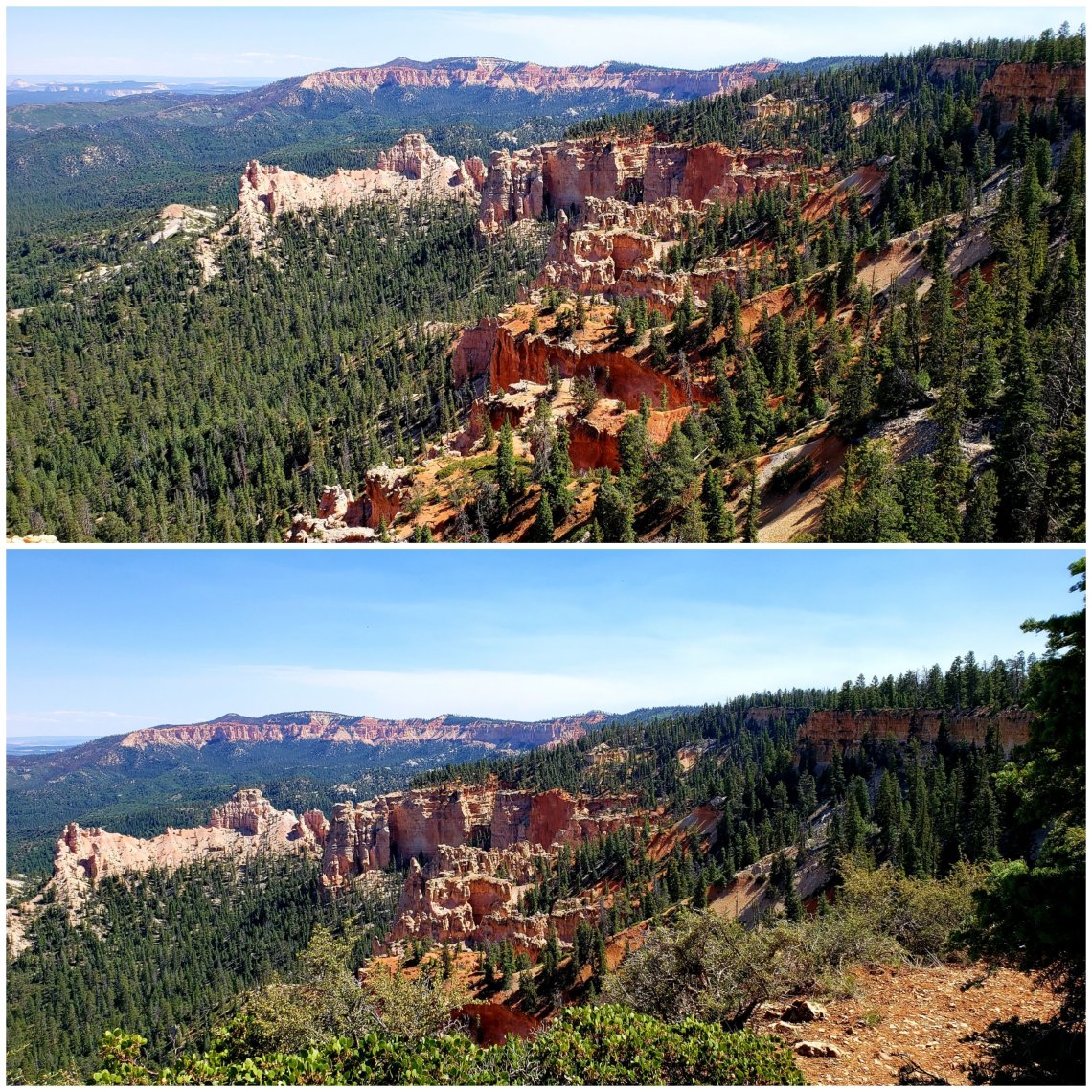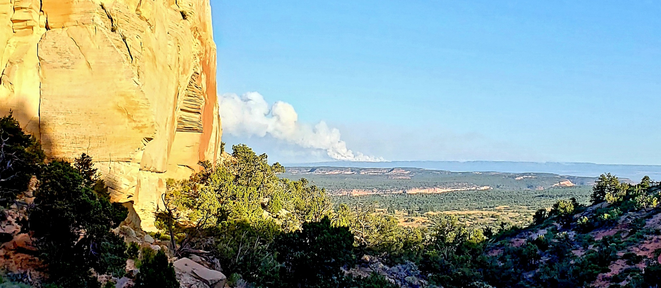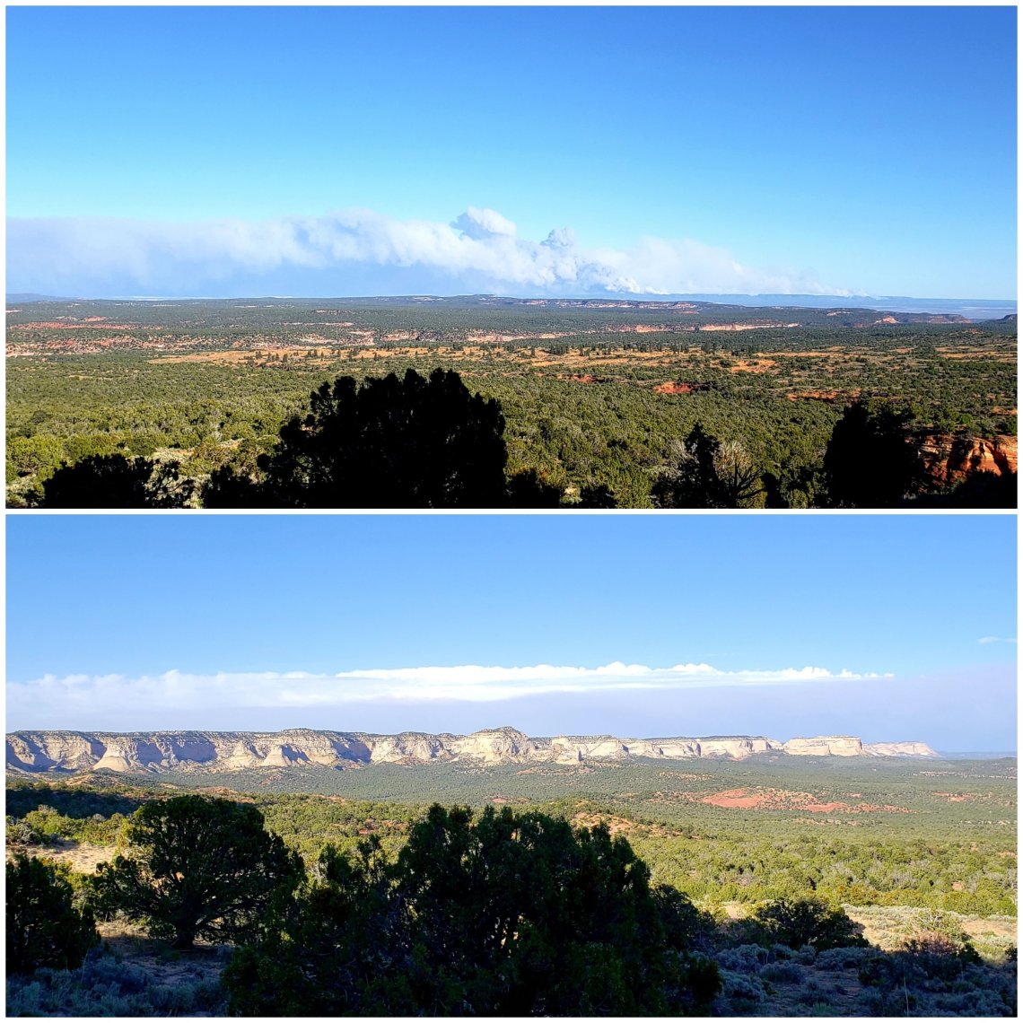 Looking from higher ground you can see the Magnum Fire in northwest Arizona. I visited the North Rim three days ago and as the fire threatens, the park is now closed.The bottom picture is part of the “Grand Staircase “