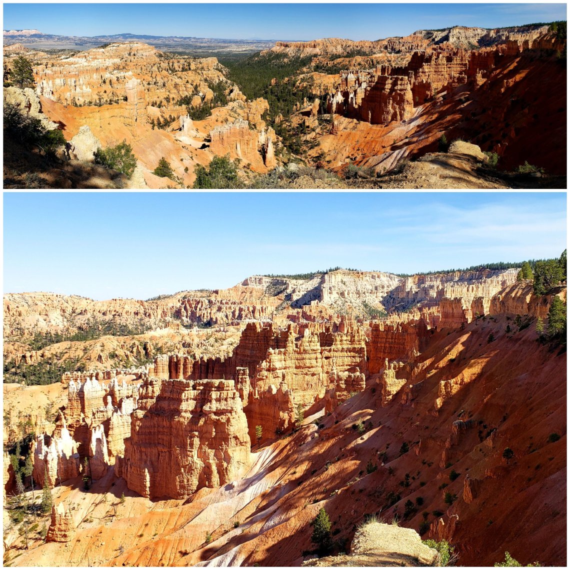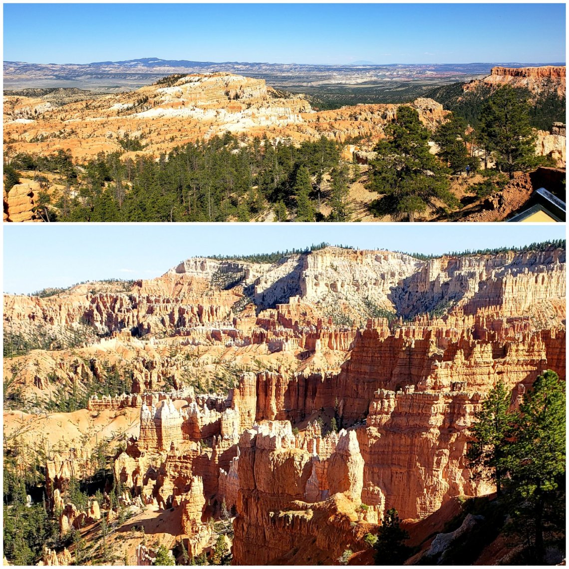 I had read that when visiting the canyon for the day it is best to drive out to the end and work your way back as all the overlooks are on that side of the road. I am glad I took this advice!Bryce Canyon has a higher elevation (9115′) than the Grand Canyon to the south (8803′)I am doing the driving tour today and bringing you along so enjoy the colors and beautiful rock formations.Stop #1