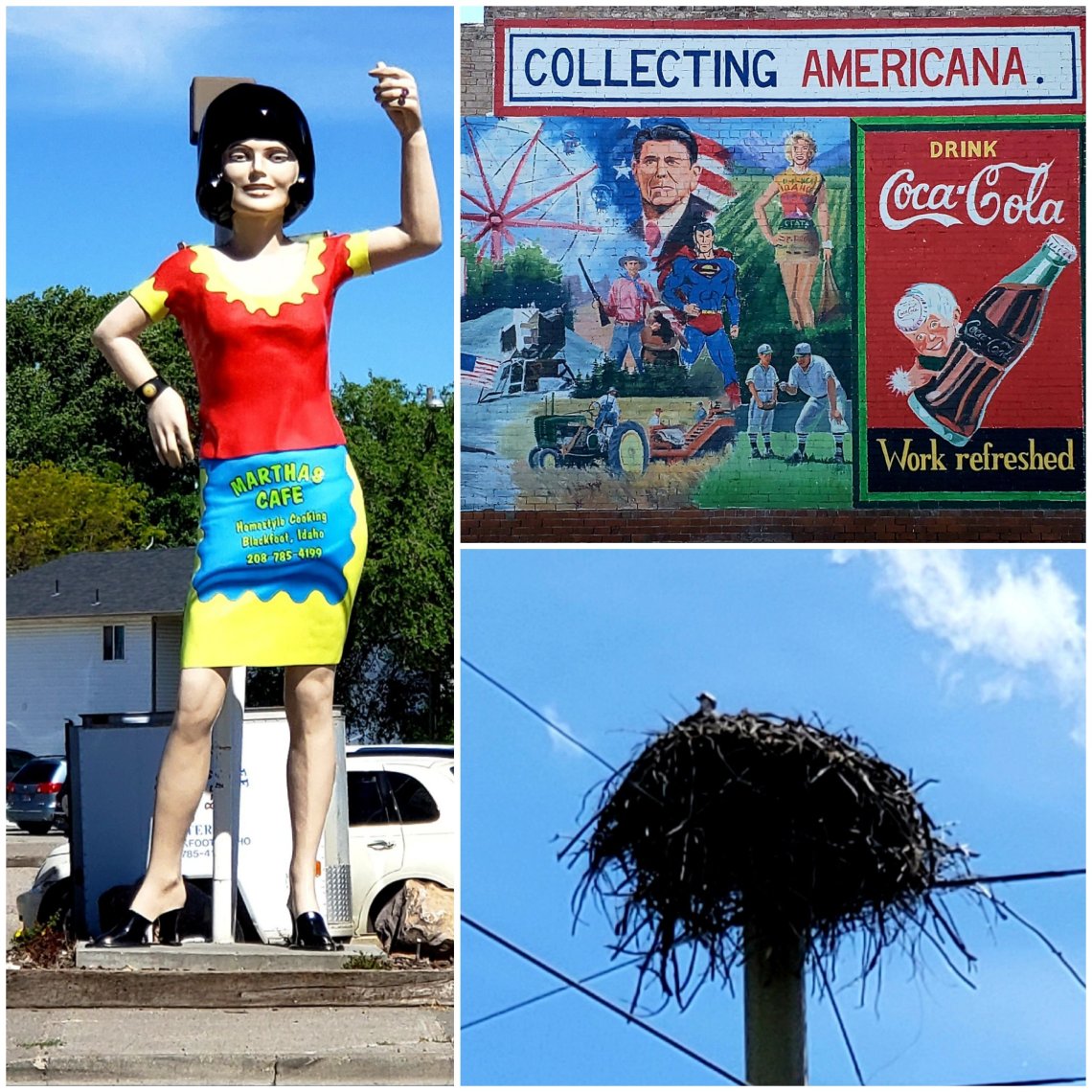 On the road again, passing through Blackfoot, Idaho, I visited this Uniroyal Gal and then discovered this neat mural downtown.
