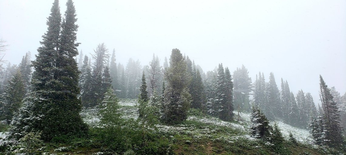 This morning it was a rainy day as I left Victor for Jackson, Wyoming and then there was snow! I haven’t driven in snow for over two years! It was a very pleasant surprise.