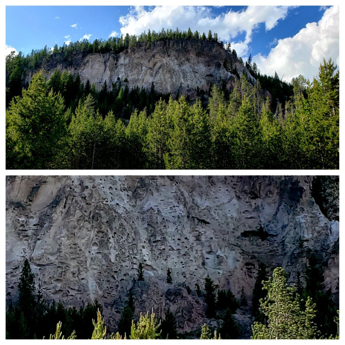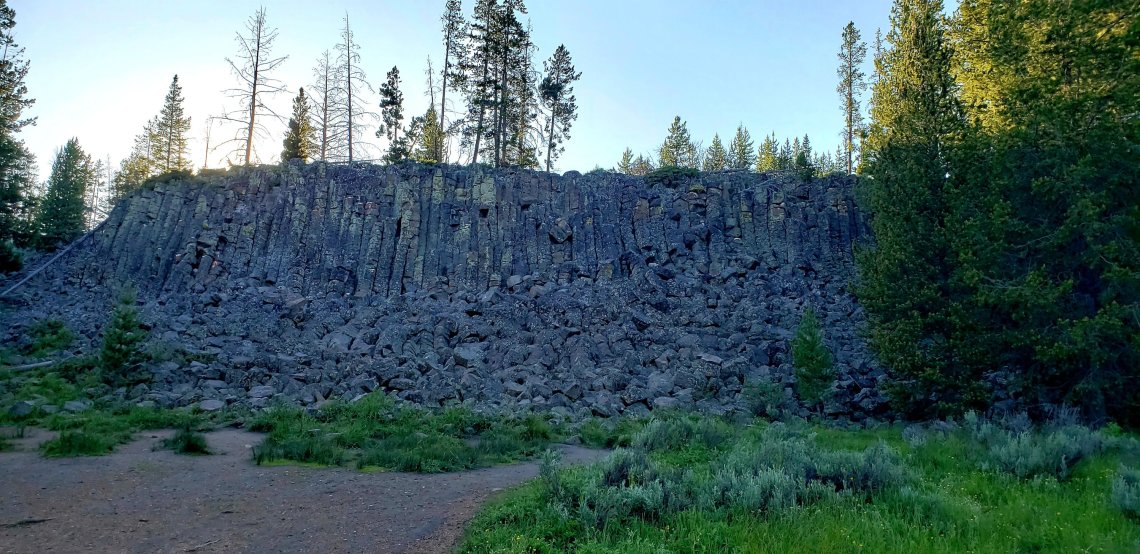 Sheepeater Cliff named after the Shoshone Indians for their use of big horn sheep. The cliff is basalt lava formed 500,000 years earlier.