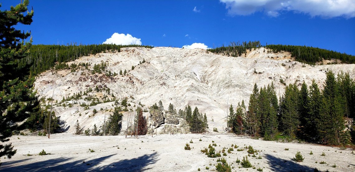 Roaring Mountain, named for the fumaroles, that in the early 1900’s could be heard for miles away.