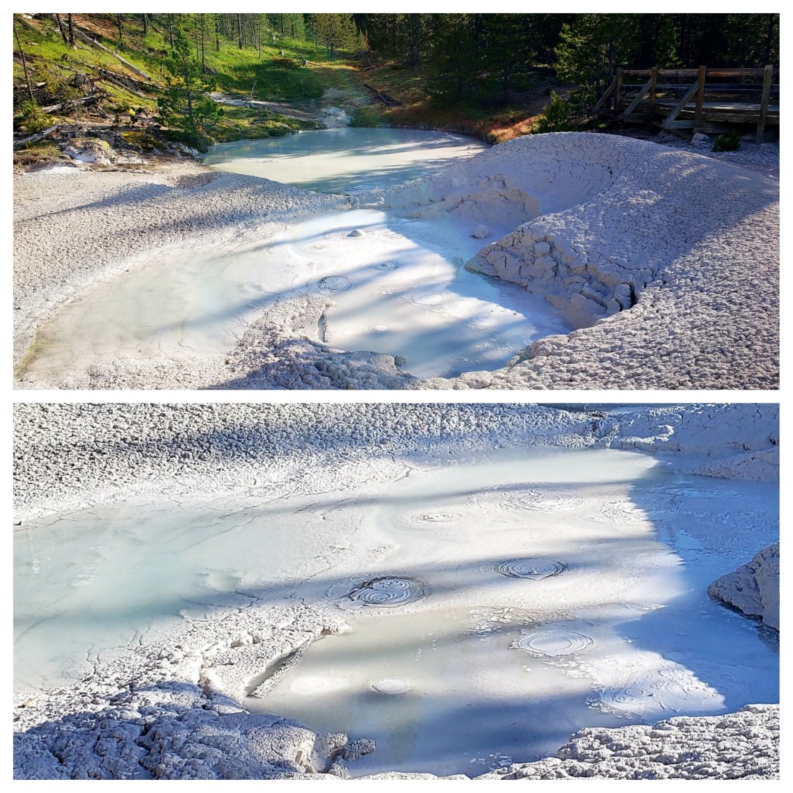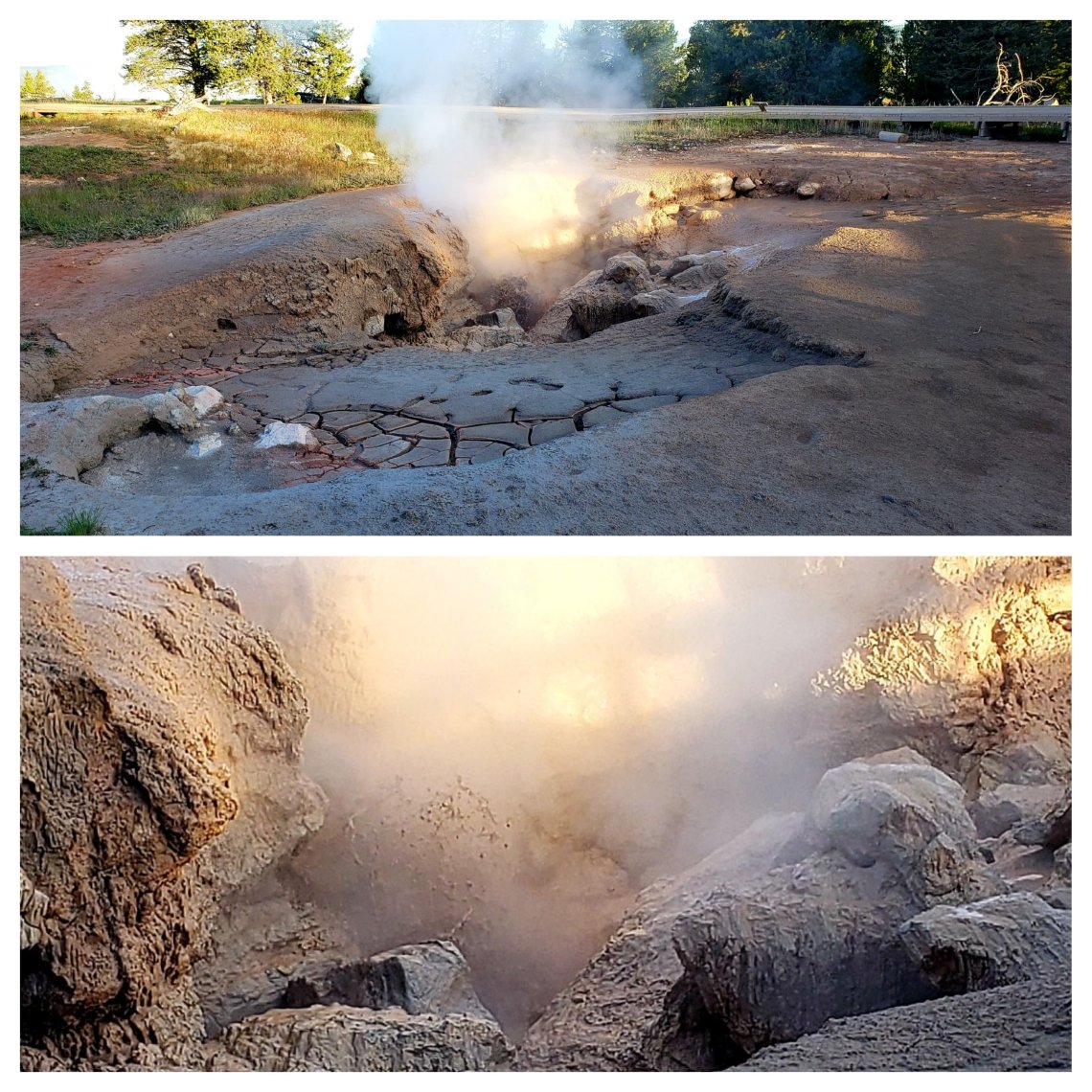 Mud Pots are acidic hot springs or fumaroles of bubbling mud.