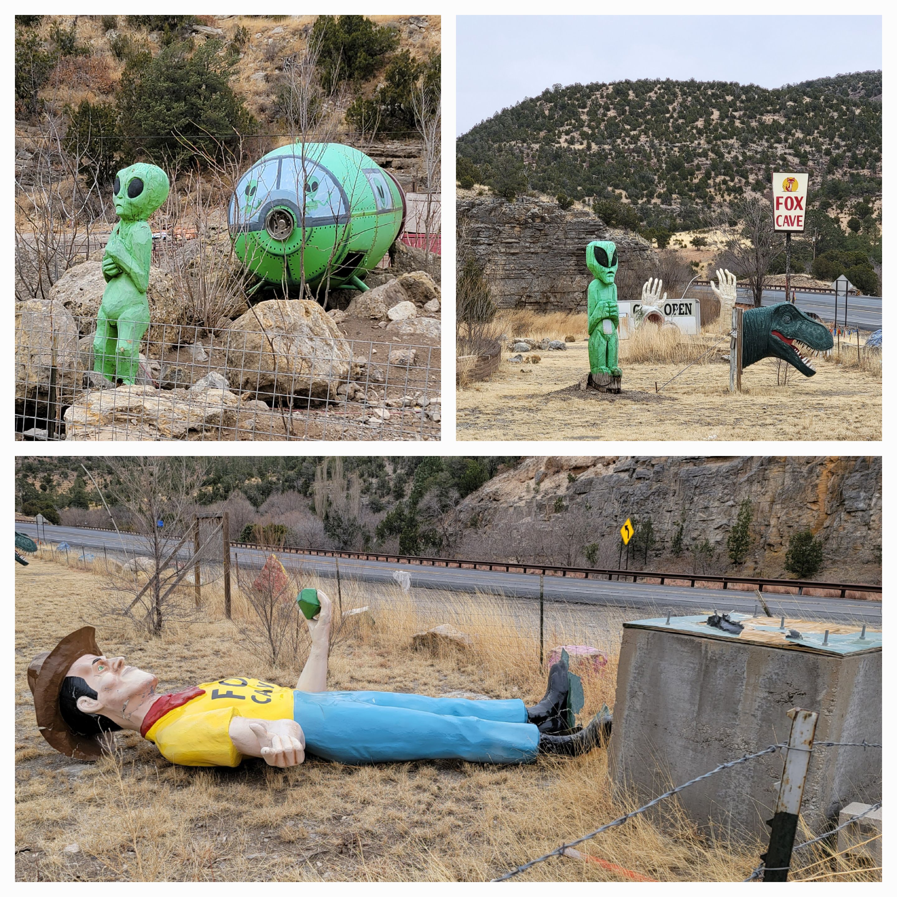 Then there was this place called Fox Cave. It had a lot of off the wall statues, buildings and animals. Awwww the poor Muffler Man fell down.