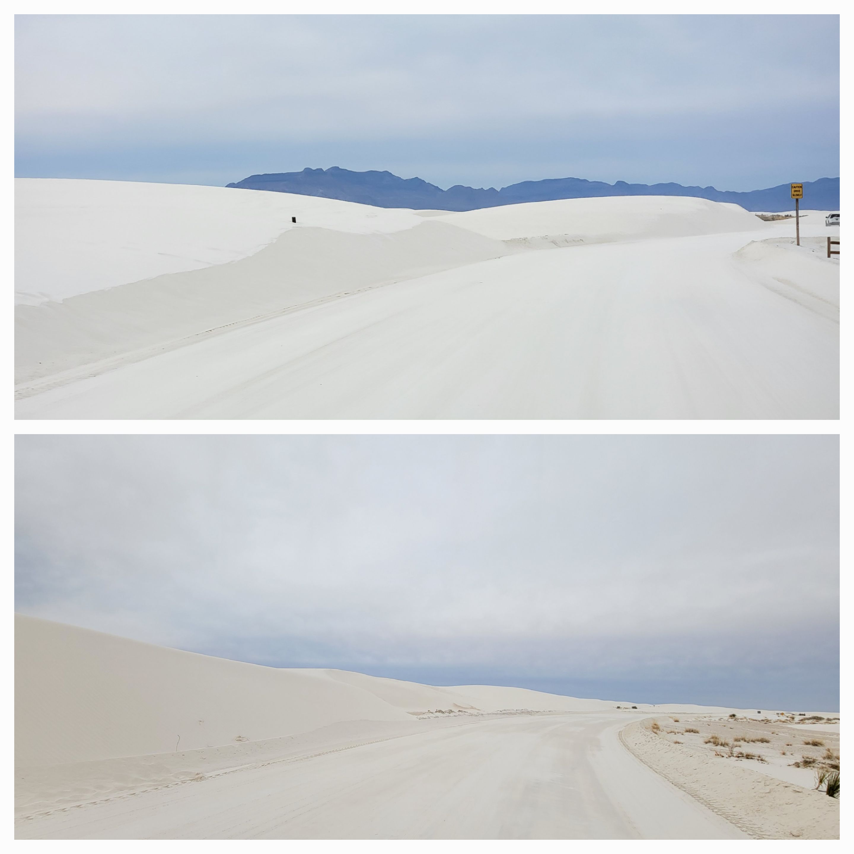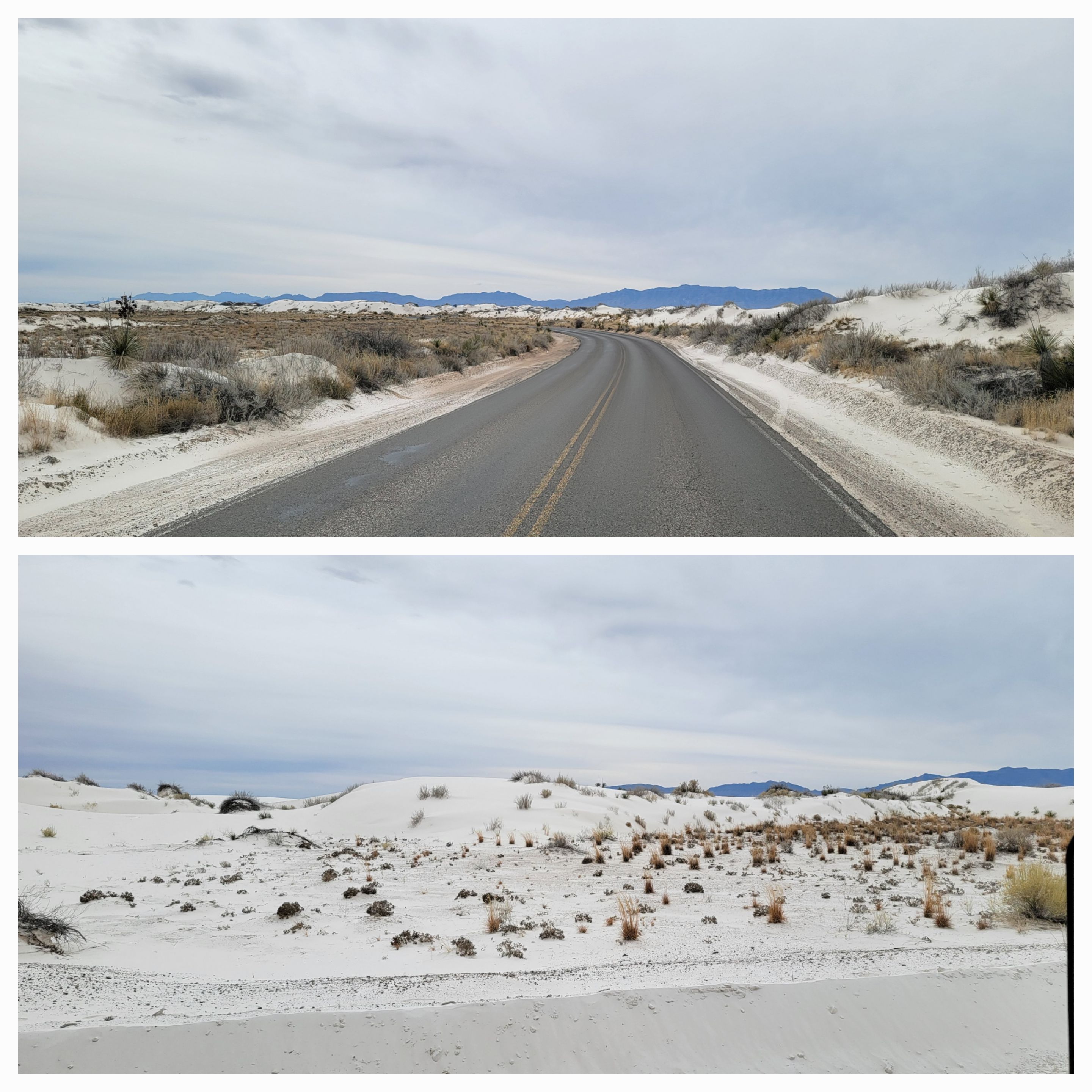As we descend out of the Lincoln National Forest and into Alamgordo, New Mexico we stop at White Sands National Park. It looks like snow but it is the whitest sand ever, hence the name!