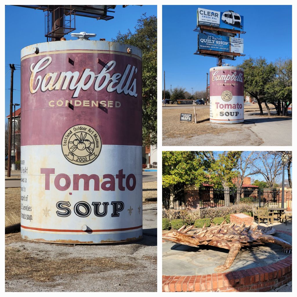 New day with little sleep but first, the Giant Campbell Soup Can and Ole Rip! HaHa! My brother worked 35 years for Campbell’s and I worked 6 before going to the Post Office.