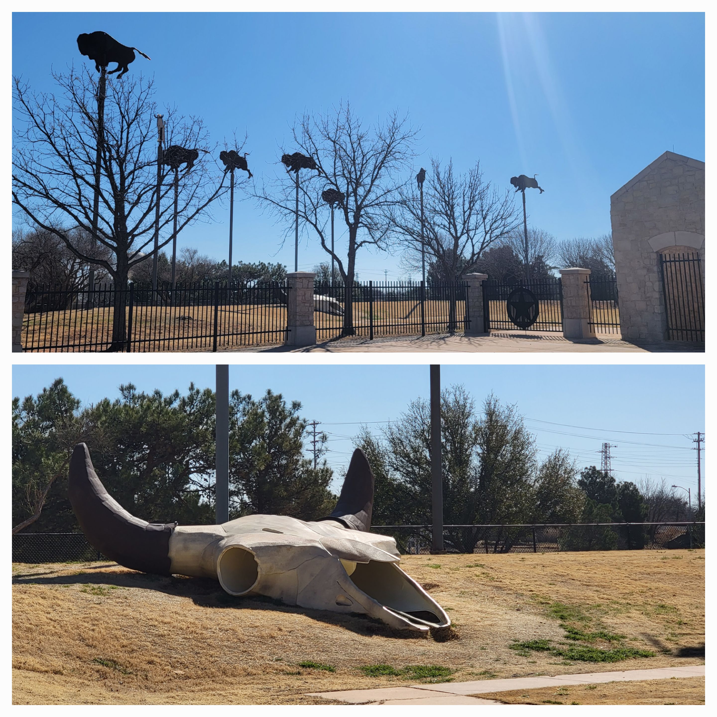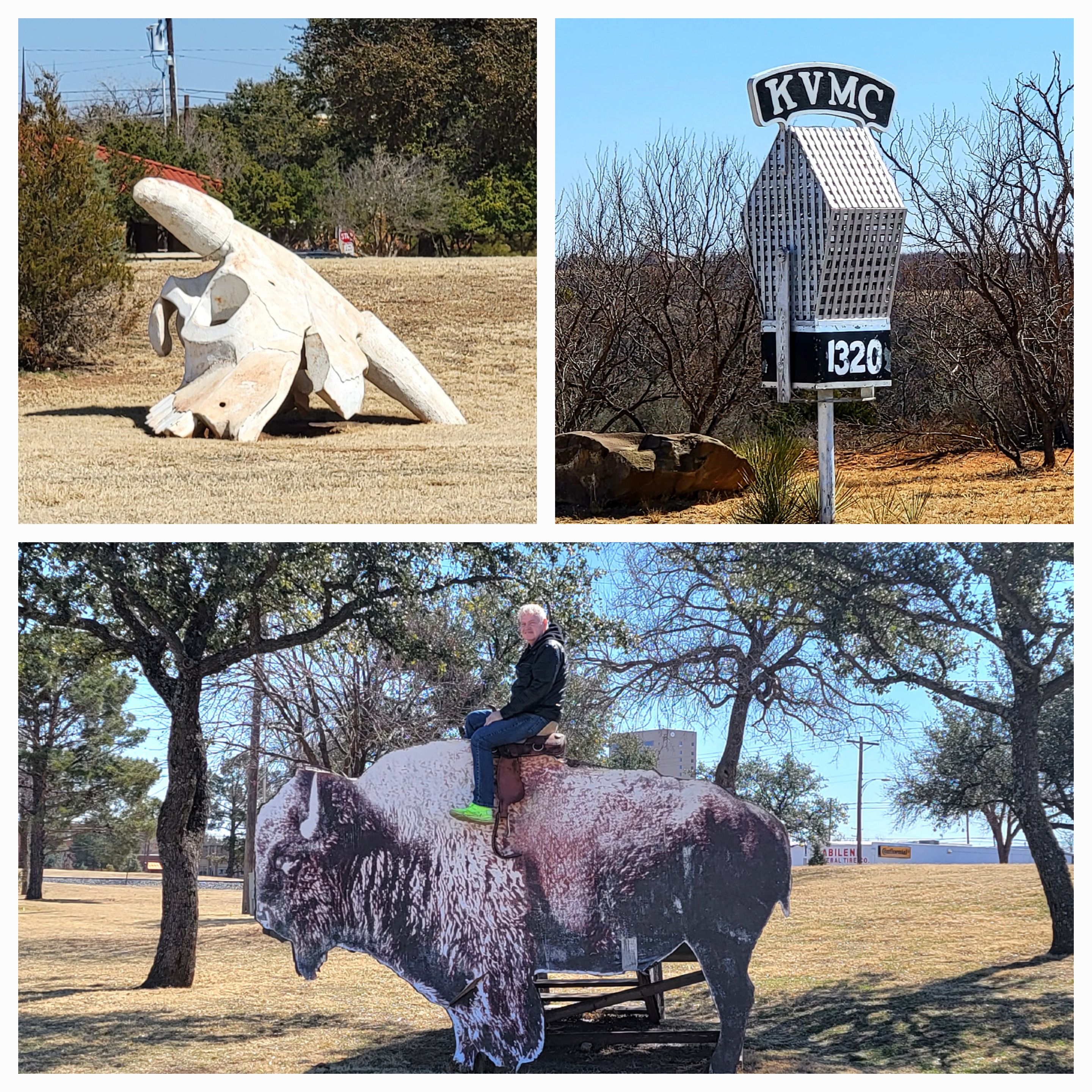 Largest Bull Skull, Giant Microphone in Colorado City, Texas My brother on a 2-D Buffalo