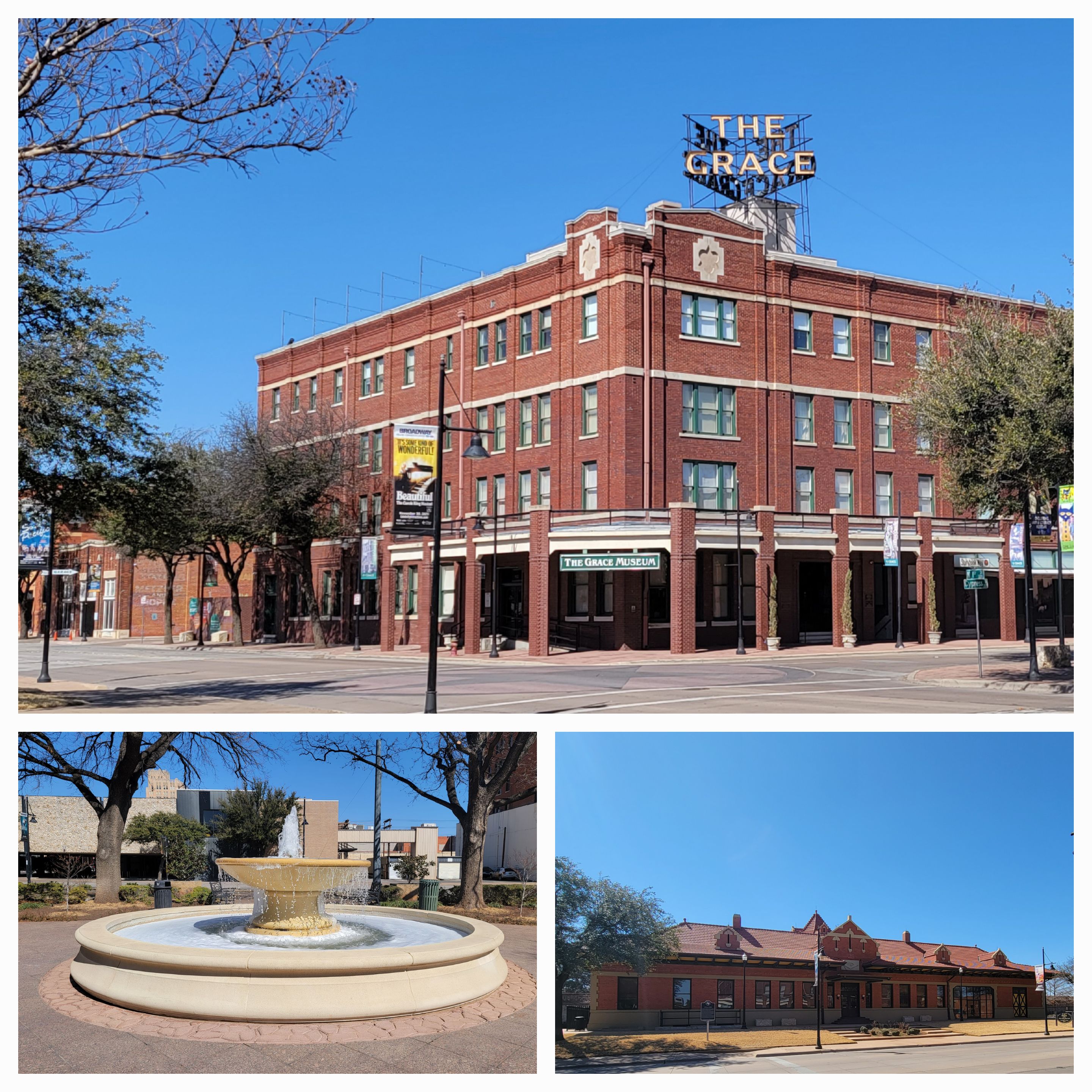 The Grace Museum (hotel), The Everman Park Fountain. And the T&P Depot
