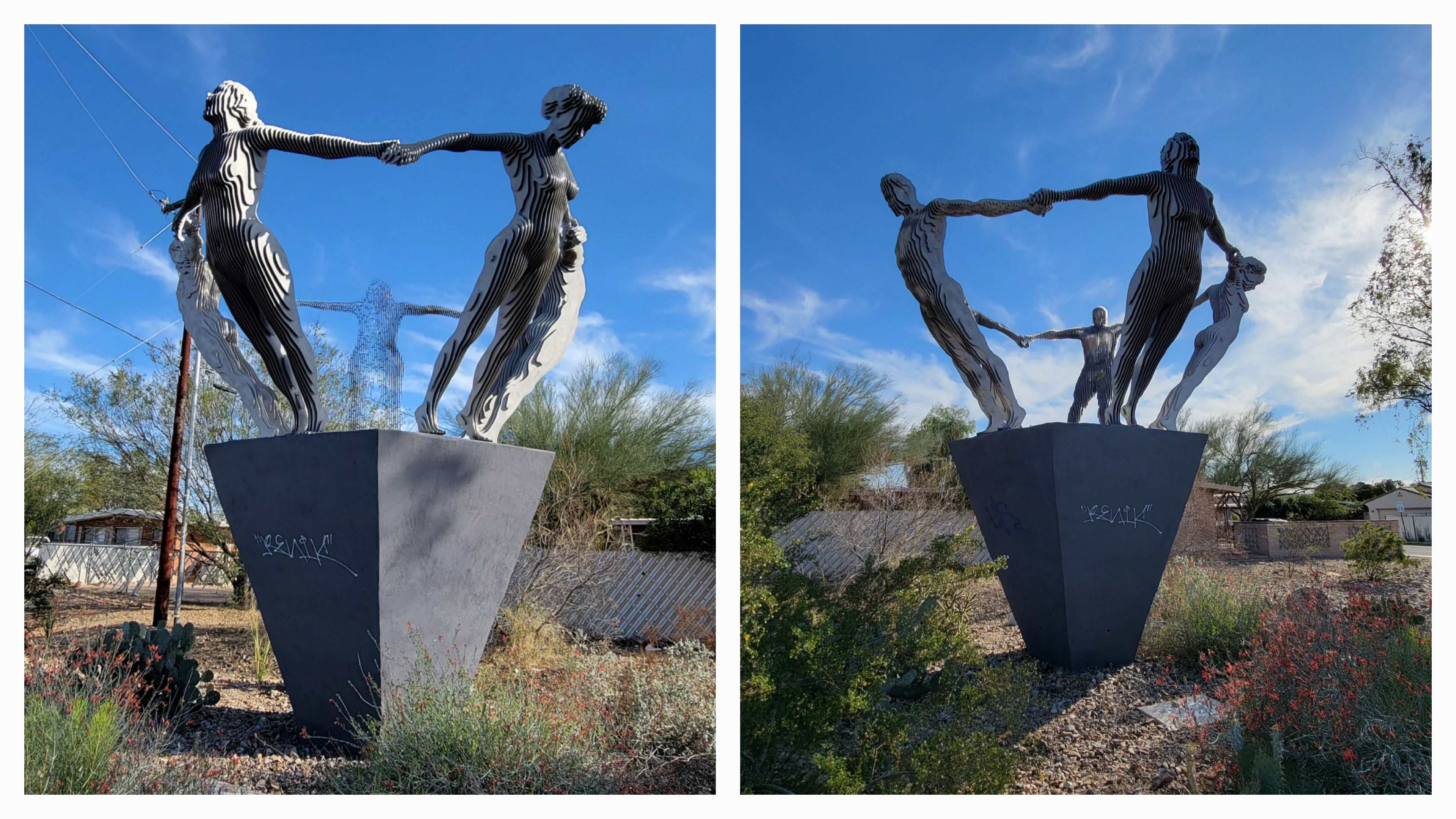 Like the invisible horses, there was another piece of artwork of the same concept called Unity. See how at different angles they seem invisible