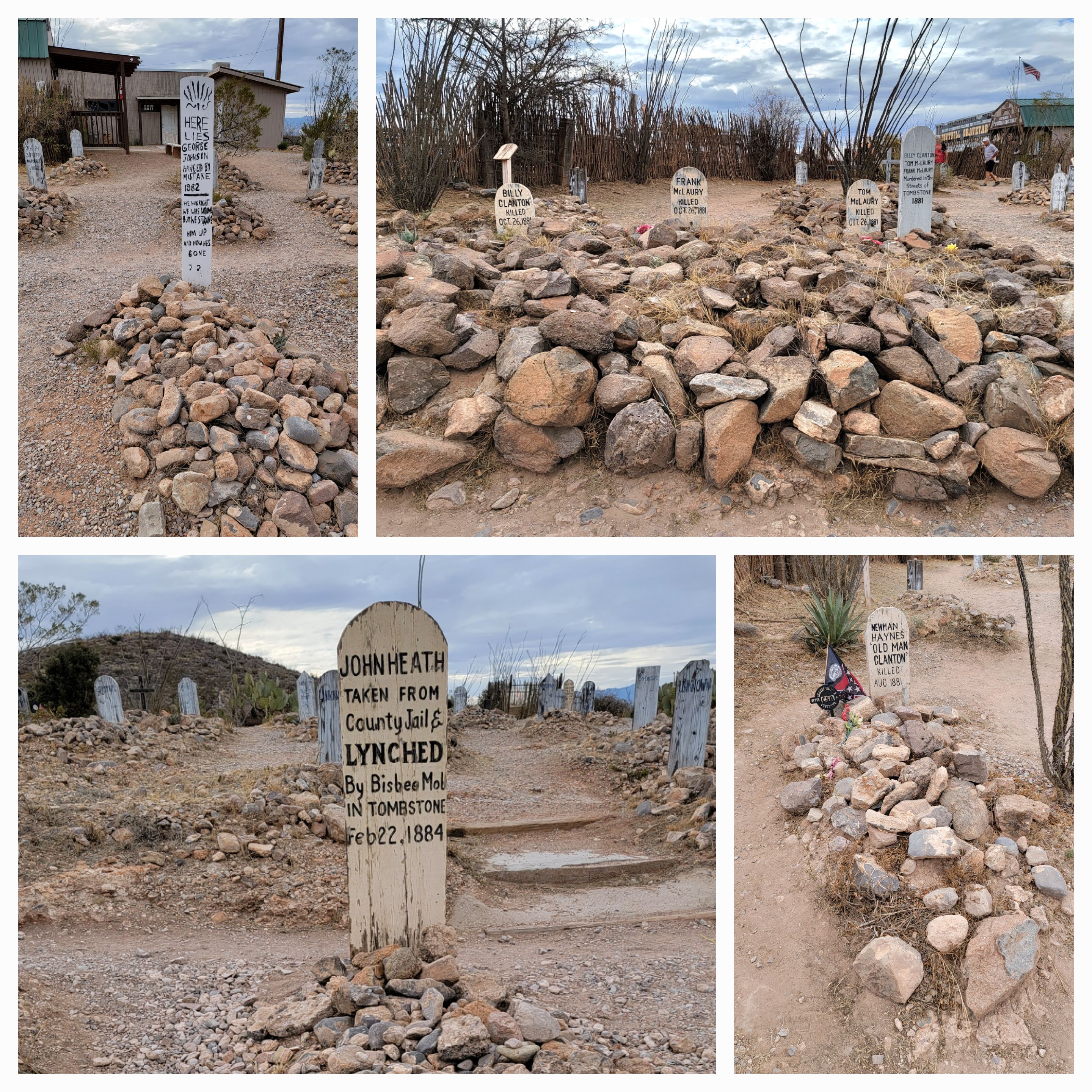 The Cemetery is said to hold 300 bodies of which 205 are recorded. You can find the Graves of Billy Clanton and the McLaurys who were shot at the O.K. Corral by Wyatt Earp, his brothers and Doc Holiday